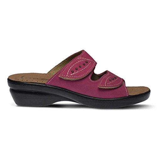 Product DescriptionDual band slide sandal featuring hook and loop closures on both straps with embroidered leaf detail0