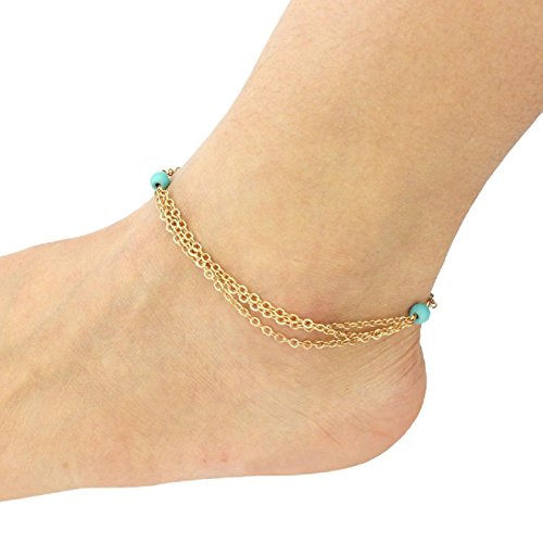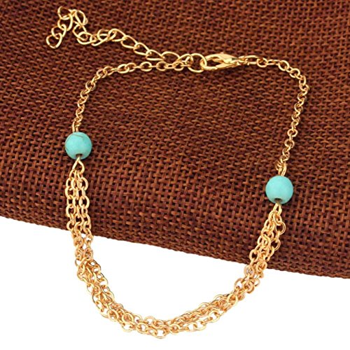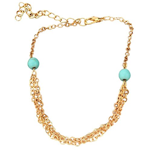 -. Title : ABC Turquoise Beaded Tassel Multilayer Anklets