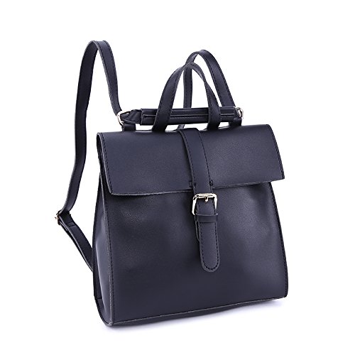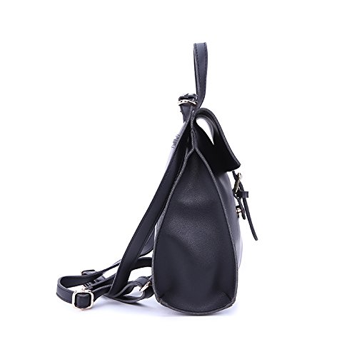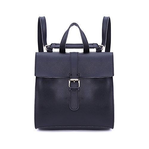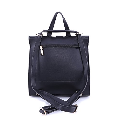 Patty Both SIMPLE POCKET PU Leather Women Casual Shoulder Bag & Backpack (Black)