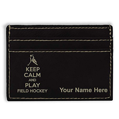 Money Clip Wallet, Keep Calm and Play Field Hockey, Personalized Engraving Included (Black)