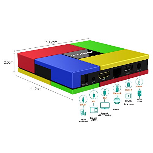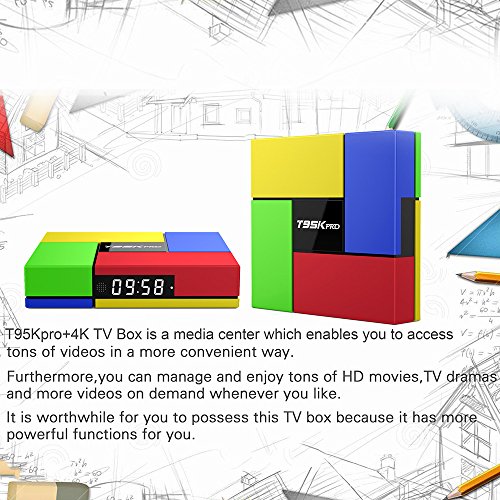 -. Feature : Smart T95K PRO TV Box is new arrived in modern rubik's cube appearance with digital display function. It powered by Amlogic S912 Octa-core cortex-A53 CPU up to 2GHz, the latest most powerful Octa Core CPU performance for Network Set-top Box, up to 2.0GHZ Ultra high frequency, more than 4 times performance improvements. Pairing with Mali-T820MP3 GPU, such high configuration gives you AWESOME home theater and gaming experiences. / Supports decoding and playing almost all popular audio and video formats, bringing you to enjoy 4K ultimate HD video. Users can find many useful add-ons for their TV boxes. It supports social network, Miracast, Airplay, Skype chatting, Picasa, , Flicker, Facebook, Online movies, etc. / Powerful Android 7.1 OS, the newest generation of android tv box. Users can download, install or uninstall hundreds of free software, games and application programs easily and conveniently. It is built for office work, entertainment, home theater, business meeting, etc. / 2GB DDR3 + 16GB EMMC Flash, perfect combination guarantees high standard 4K decoding resolution and high speed playback. The apps run smoothly without any lagging or freezing. And you can store lots of favorite multimedia files. / Equipped with a remote to control the TV Box. It supports mouse and keyboard via USB, you can operate it more convenient.