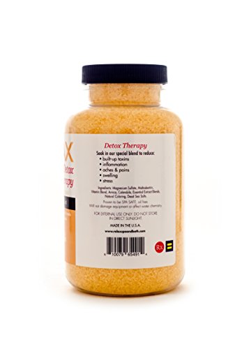 -. Feature : Detox Therapy - 19 Oz Bottle - All Natural, Therapeutic Bath Crystals - Perfect to Eliminate & Remove Toxins / Powerful Aromatherapy with Natural Coloring - Enhances Relaxation - Vitamin Enfused / Remedy for Aches & Pains - Reduce Tension & Stress - Enhance Self-Healing & Detoxify / Skin Softening Moisturizers - For Spas, Hot Tubs, Jacuzzis, & Whirlpool Baths - Spa Safe / Does Not Affect the pH or Water Chemistry - Safe For Children & Pets - Will Not Damage, Stain or Affect Equipment or Surface