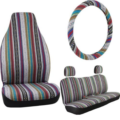 Bell Automotive’s Baja Blanket Universal Bucket Seat Cover features a fun Southwest inspired design and an updated feel for comfort while protecting your seats from wear and tear. It’s a great way to keep it cool with the traditional look and feel of a poncho. Fits most seats with built-in or adjustable headrests.