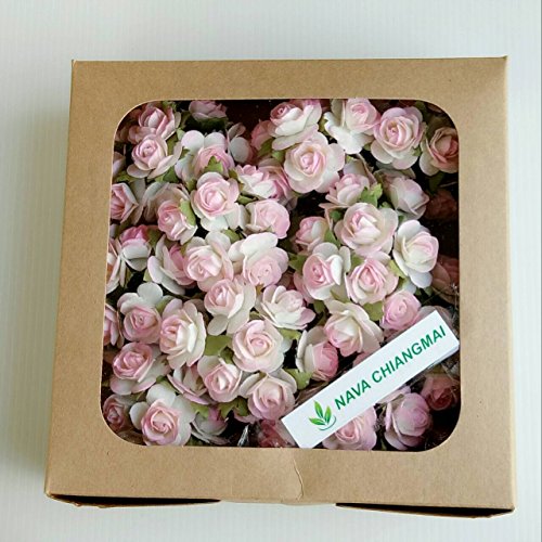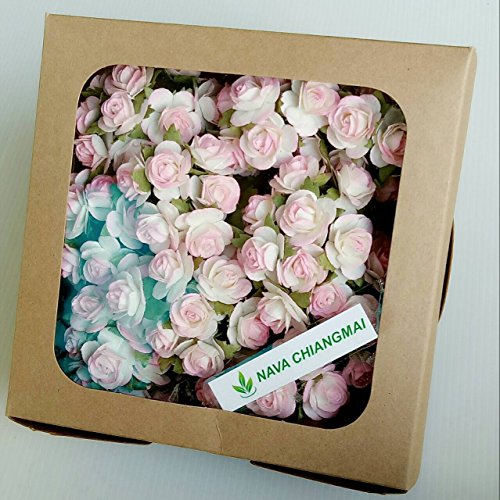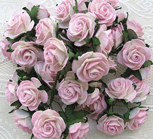 100 Pcs Rose 20 mm Pale Pink and White Mulberry Paper Flowers Handmade Craft Project Cardmaking Floral Valentine