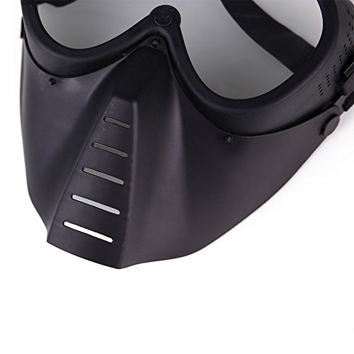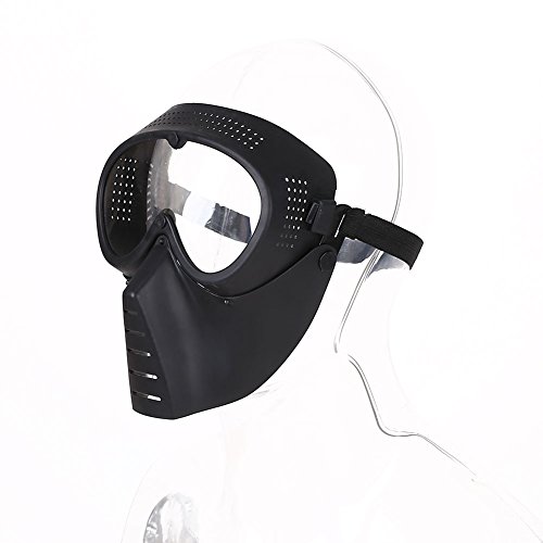 -. Feature : High-quality TPR material composition, strong impact, safe and reliable,Making sure you are safety when you playing CS Game / The goggles frame lateral has ventilation systems and high-density black breathable foam inside help draw warm air out of the tactical mask interior / This type of airsoft goggle masks is Suitable for cycling, skiing, rock climbing, outdoor CS field activists equipment protection / Fully adjustable, one size fits all,3 cm width Black high elastic cord Wear comfortable. Adjustment buckles easily to adjus / Clear protective lens with anti-fog liquid, Full face protection for eyes and most of face.