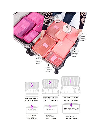 One side of the bag is mesh, convenient for looking for for the clothes what you want£¬6 different size bag that can hold all your travel clothing, shoes, makeup, shaving accessories and more