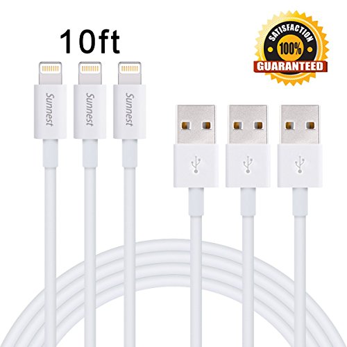 Sunnest 3Pack 6FT Extra Long Nylon Braided 8 Pin Lightning Cable USB Charging Cord with Aluminum Connector for iPhone 6/6s/6 plus/6s plus, 5c/5s/5, iPad Air/Mini, iPod Nano/Touch(White)