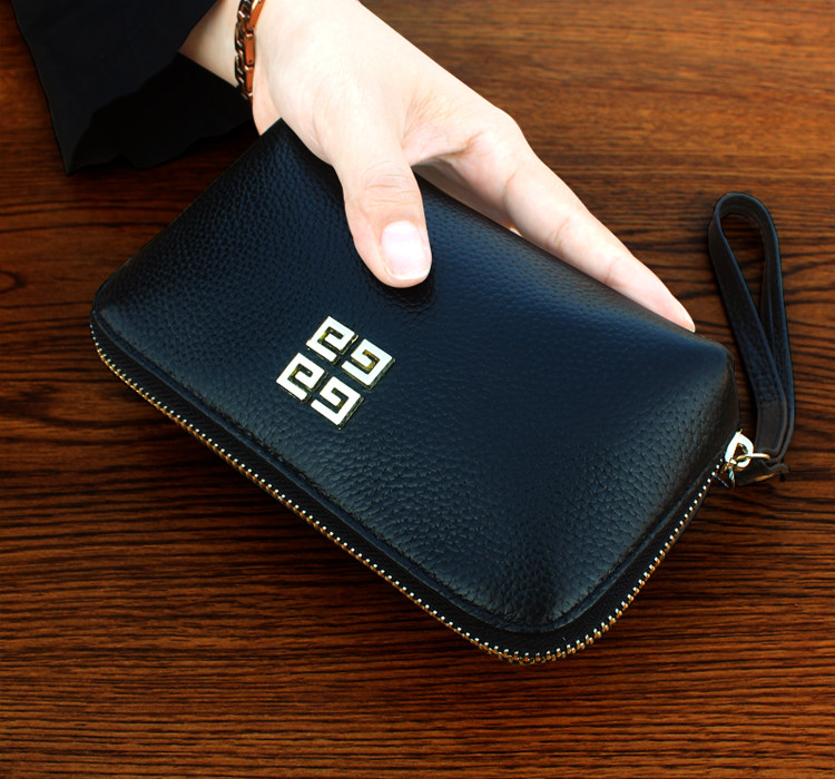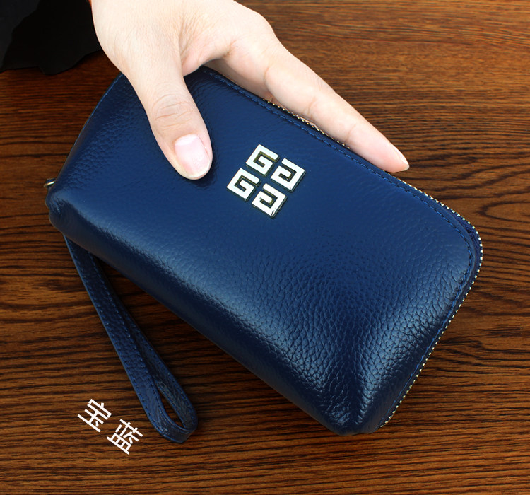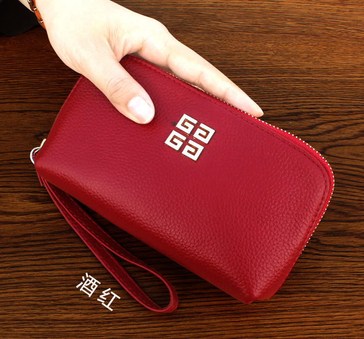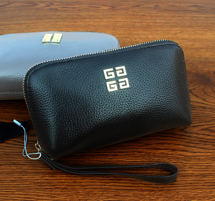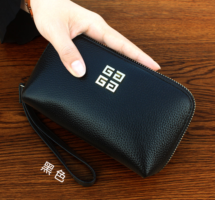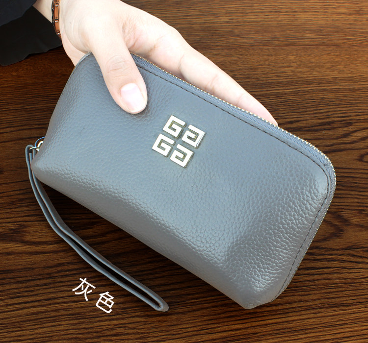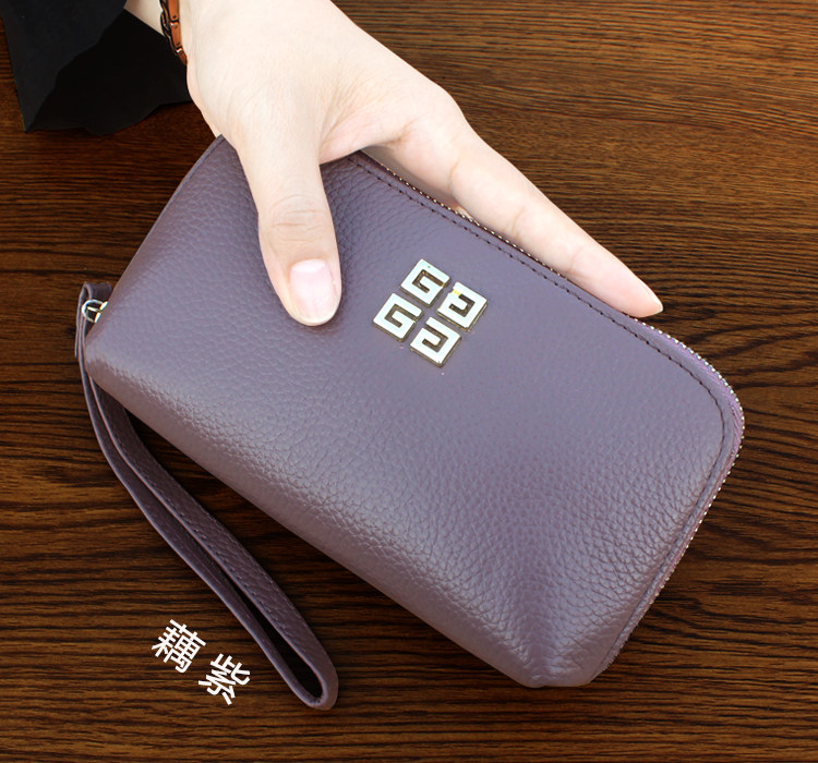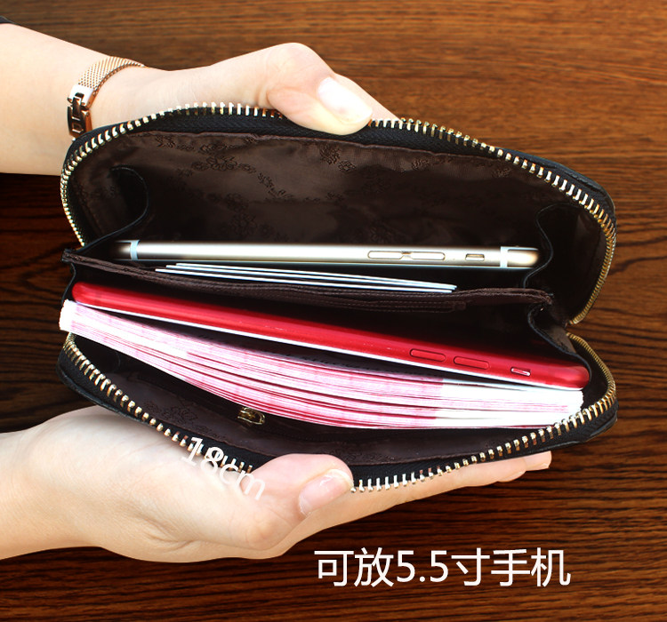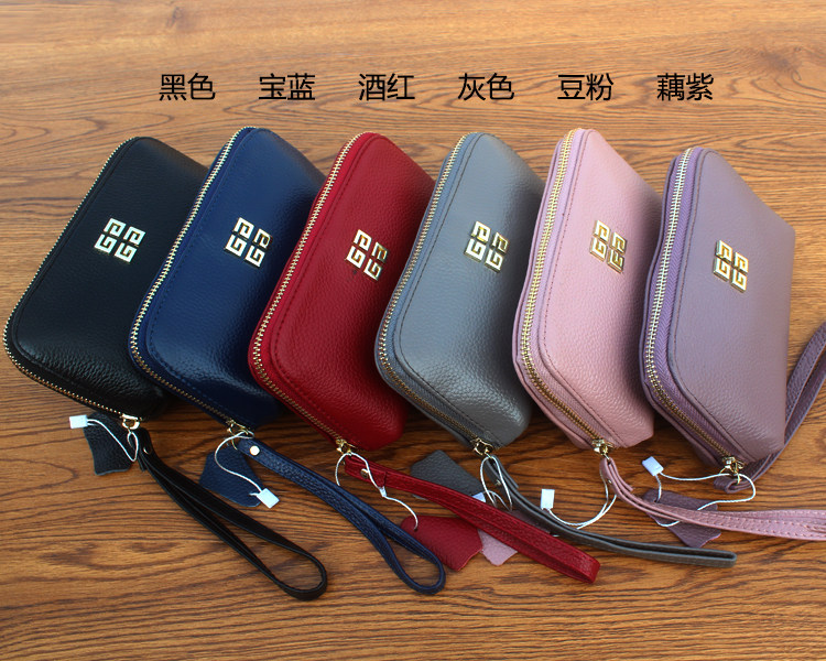 欧美时尚新款头层牛皮手拿包女多卡位贝壳包简约百搭手机包钱包