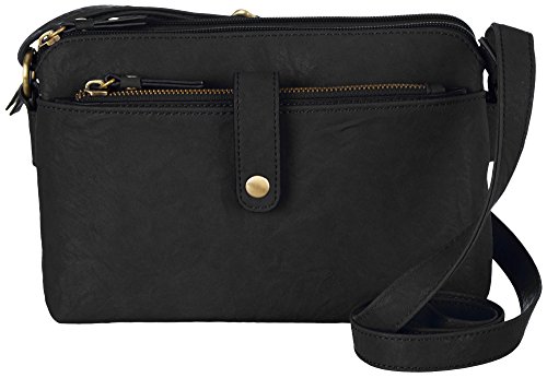Studio : Bueno Publisher : Bueno Product Description Bueno crossbody handbag features two zipper compartments, exterior pockets, interior zipper pocket, interior slip pockets, and an adjustable shoulder strap. Includes a zipper pouch. Handbag measures 9' L x 3' W x 6.5' H. Shoulder strap drop is 28'. Pouch measures 8.25' L x 4.5' H. Vinyl. 0