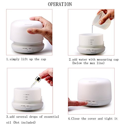 This cool mist Aroma Diffuser, with compact and portable design, the cap of the humidifier diffuser is easy to take off, you won’t bother to unscrew the cap with great force when your hands is wet. Just gently take off the cap, add water and essential oil, enjoy high-quality life.