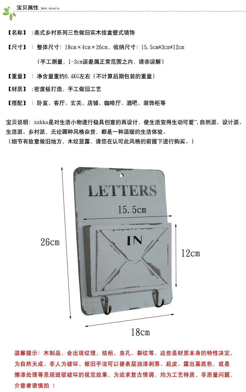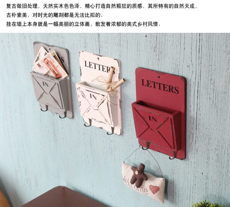 美式乡村复古怀旧木质装饰收纳盒 家居客厅墙饰壁挂钥匙架储物盒