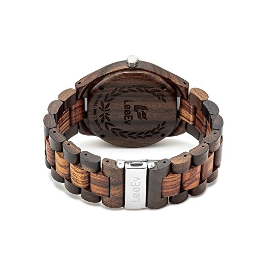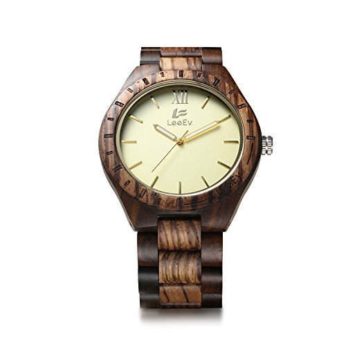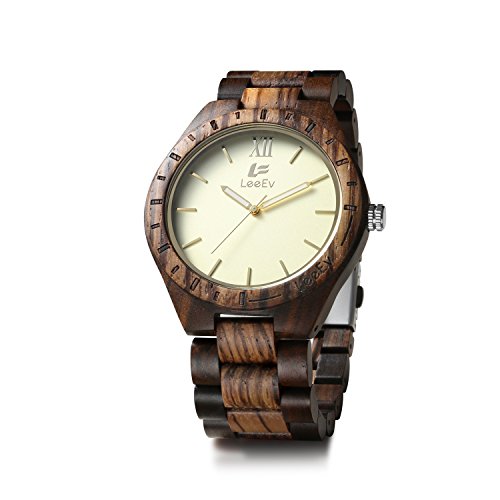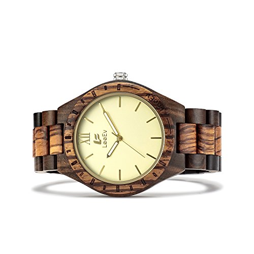 -. Binding : Watch -. Brand : LeeEv -. Color : Zebra -. Department : Mens -. EAN : 0606993984657 -. Feature : 100% Natural Sandal Wood. / Band Length Can be Adjust. / Original Import Japanese Miyota 2035 movement. / Daily Waterproof, cannot wear it when Simming and Bathing. / NOTICE. Because of uniqueness, the grain and color of the wood may not be the same as shown in image. -. Label : LeeEv -. Manufacturer : LeeEv -. MPN : EV1001 -. PackageQuantity : 1 -. PartNumber : EV1001 -. ProductGroup : Watch -. ProductTypeName : WATCH -. Publisher : LeeEv -. Size : Large -. Studio : LeeEv -. Title : LeeEv EV1001 Mens Natural Black & Zebra Sandal Wood Quartz Light Weight Vintage Wooden Wrist Watch -. UPC : 606993984657