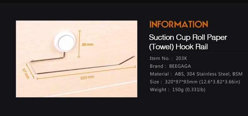 BEEGAGA Towel Bars Bath Towel Hook Rail Wall Mounted Sucker Kitchen Roll Paper Hanging Rod Long 32cm 304 Stainless Steel Holder