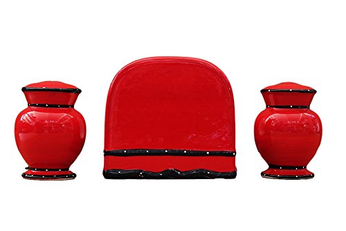 [Product Information]- Tuscany Hand Painted Red Ruffle Salt and Pepper, Napkin Holder Set, 85228 by ACK