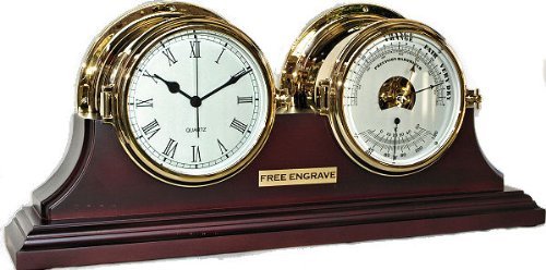 -. Title : 7" Nautical porthole Clock and Barometer Thermometer set with Stand