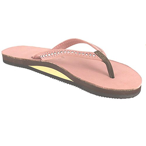 Studio : Rainbow Sandals Publisher : Rainbow Sandals Binding : Apparel Product Description Rainbow has been producing top quality sandals. Each Rainbow sandal is handmade with life support parachute stitching and 2,000 lb tested military specialty straps. Rubber top sandals are constructed of laminated, closed cell sponge rubber, and feature a non-skid surface which molds to the foot thus ensuring a perfect fit for virtually all feet. Each layer of the sole is triple glued with specially formulated, ionized-balanced glue. Even the non-slip rubber bottom sole bears the Rainbow name, as a trademark of excellence.