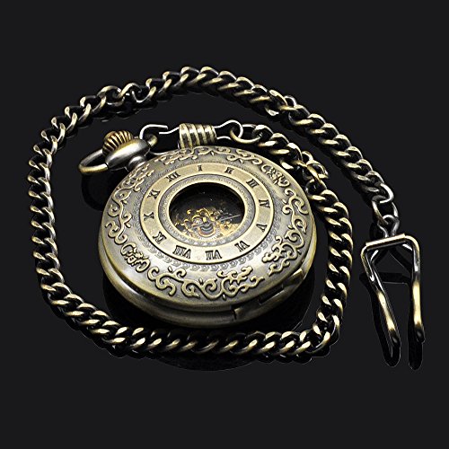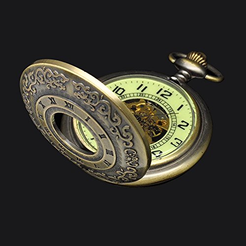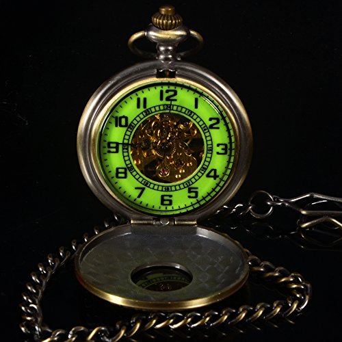 -. Title : Luminous Dial For Dark Area Mens Bronze Mechanical Hand Winding Pocket Watch