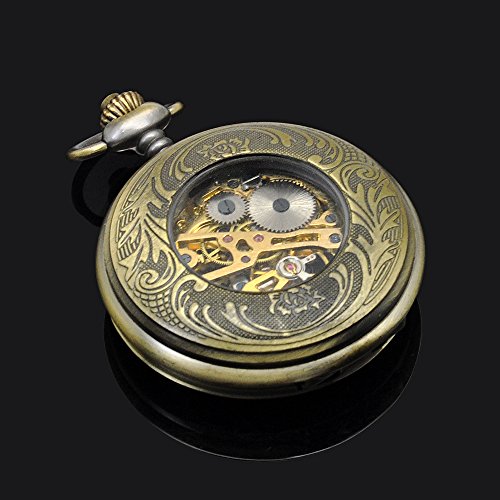 -. Feature : Unique skeleton dial with black arabic numerals and hands / Luminous dial for dark area / Mechanical movement ( manual winding ) / 12-hour Dial / Includes 31cm chain