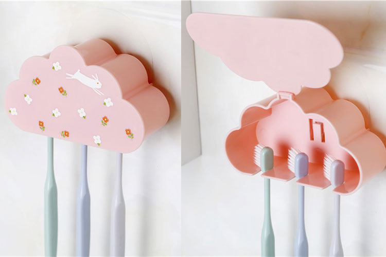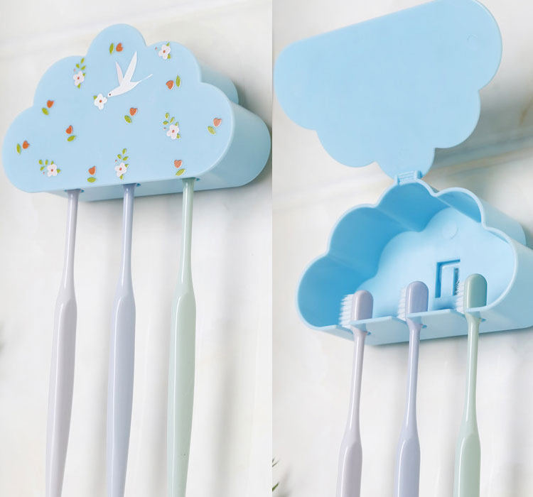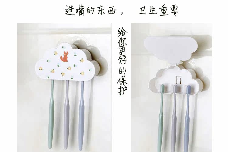 牙刷架套装吸壁式简约一家三口卡通壁挂防尘粘贴式卫生间免打孔