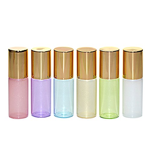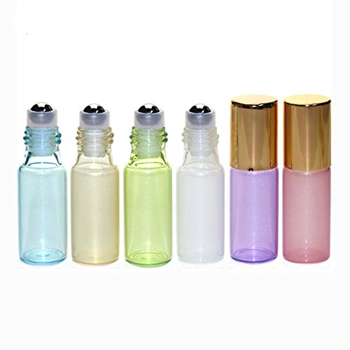 Furnido 3ml 5ml colorful Glass Roll on Bottle Essential Oil Roller Bottles Empty Refillable Glass Sample Container With Mixed Color Bottle & Gold cap for...