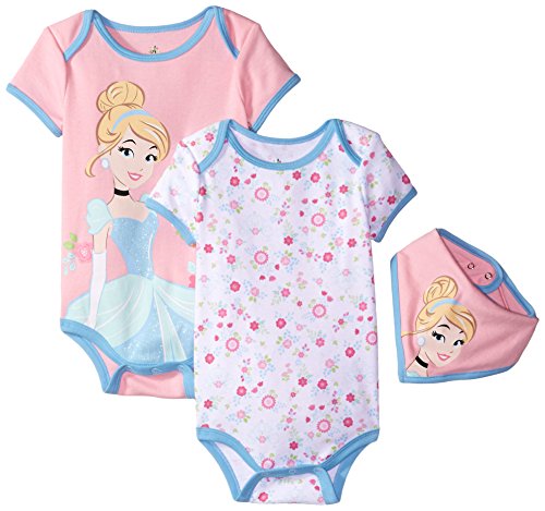 Disney Baby-Girls Cinderella Bodysuits and Bib, Pink, 12 Months (Pack of 3)