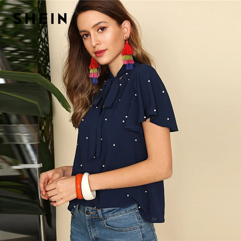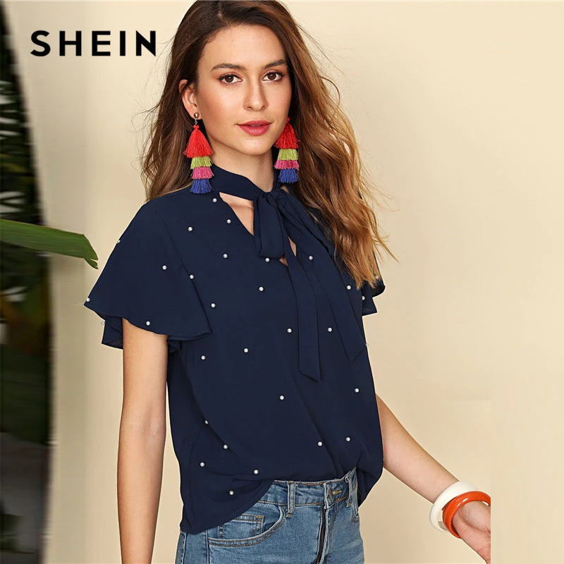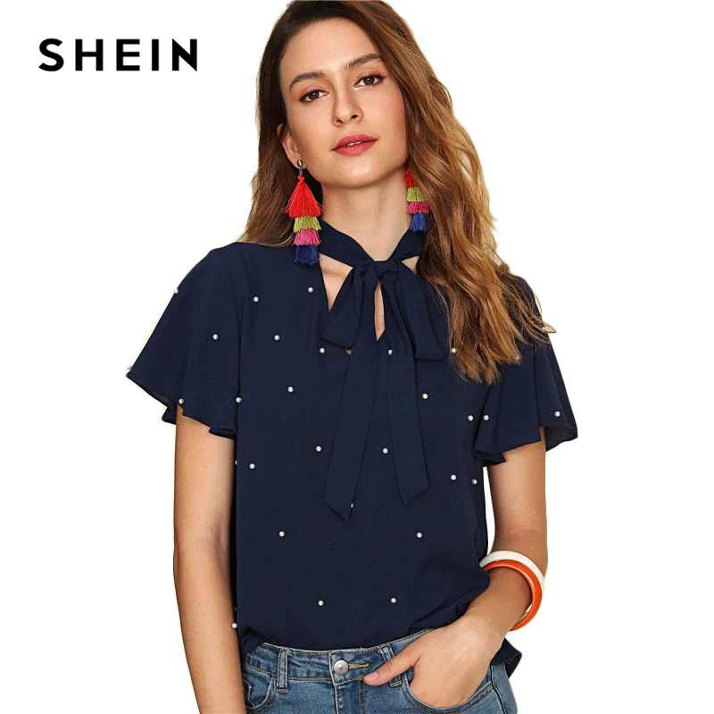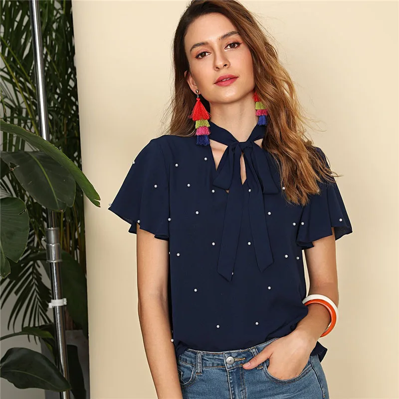 Decoration:Pearls, Ruffle, Tie Neck, Beaded