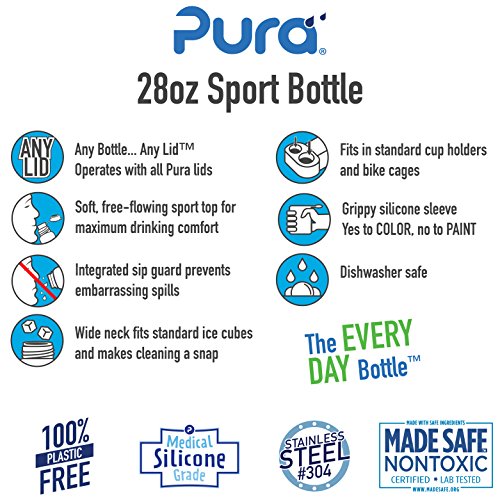 100% Plastic free Sport bottle compatible with all medical-grade silicone components from Pura; limited lifetime warranty