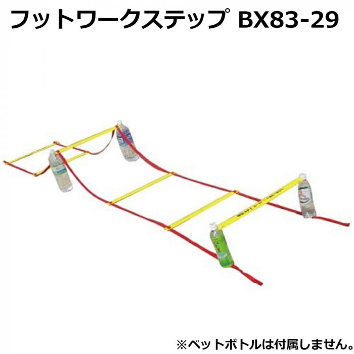 お手持ちのペットボトルを使用して、3m・6連のミニハードルとして使用できます。 製造国:台湾 素材・材質:ナイロン、PE 商品サイズ:全長:3m、バー幅:50cm 付属品:リングゴム×4個、収納袋 ※サプライヤー直送品 ご注文後3~4営業日後の出荷となります【商品名】フットワークステップ BX83-29