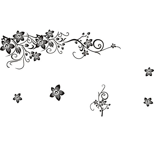 Amaonm® Removable Vinyl Black Flowers and Flower Vines Wall Decals Diy Home Art Decor Decorative Wall Sticker Murals for Bedroom Living Room Tv Sofa Background Offices Wall Decorations