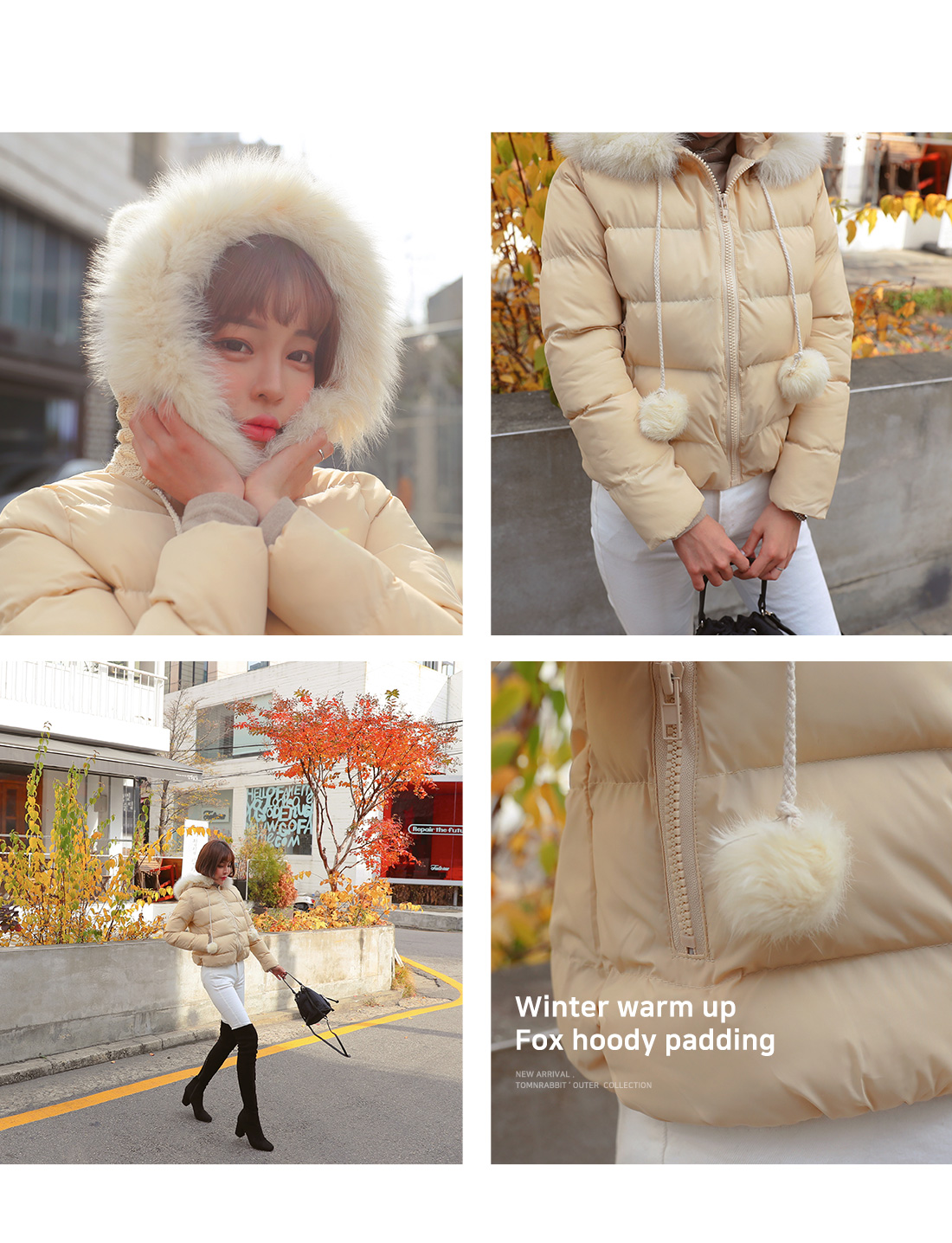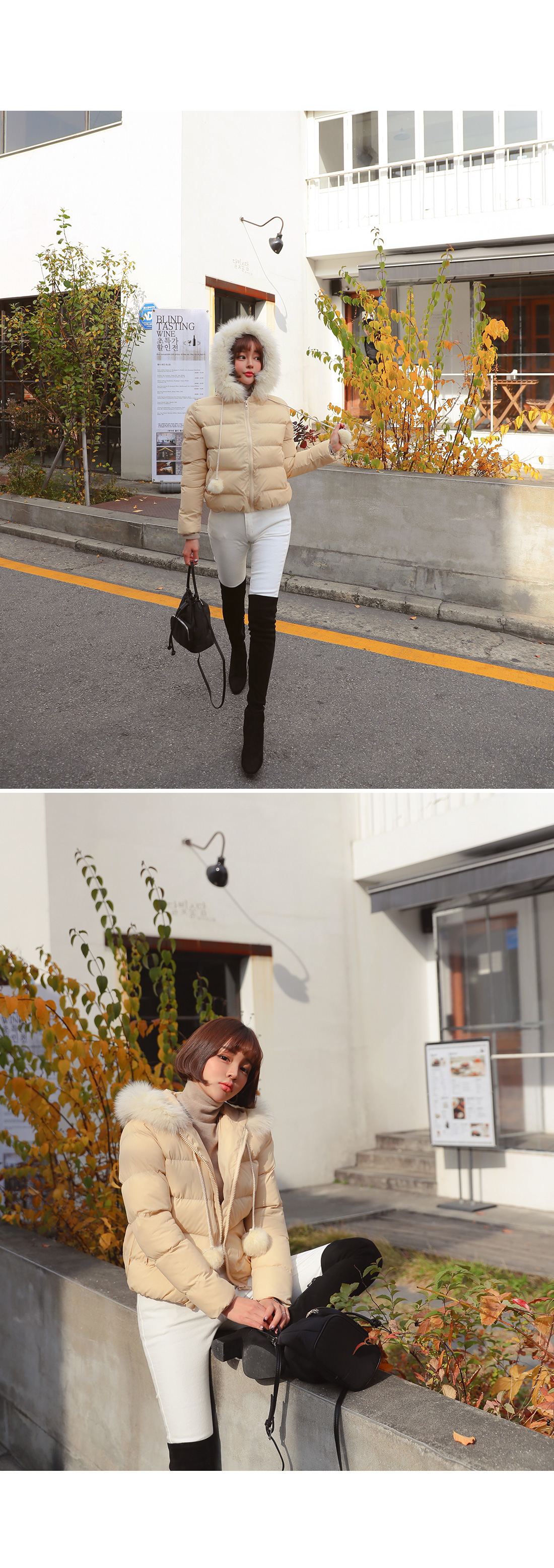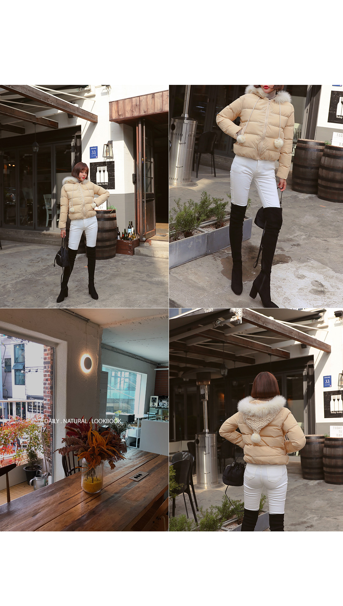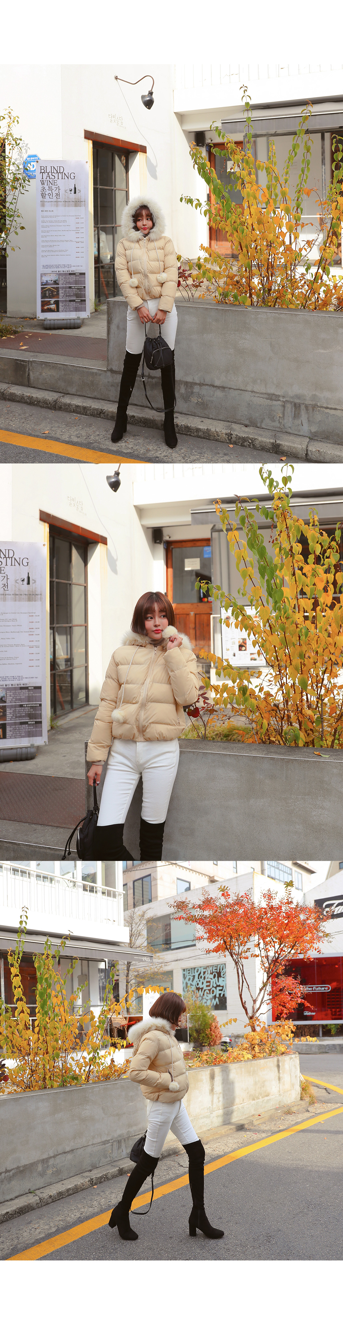 MD COMMENT 귀여운 후드와 방울이 포인트로 연출된 패딩 점퍼에요~!리얼 폭스퍼 후드로 퀼리티를 높여주었구요^^후드와 연결된 폭스 방울끈으로 사랑스러움을 더해주었답니다.웰론 100% 충전재로 가벼우면서 보온성이 높아다양한 코디 위에 걸쳐주기 좋은 아이템으로 추천해요!겉감은 폴리 소재로, 안감 충전재는 웰론 100% 제작되어보온성을 높여준 아이템이에요.숏한 핏감으로 슬림한 이너와 함께 코디해주시면 좋구요양 사이드 사용 가능한 포켓으로 실용성이 높아욧~!앞면 중앙 지퍼로 클로징이 가능하여더욱 더 따뜻하게 착용하실 수 있답니다!가볍게 툭 걸치기좋은 아우터로 사랑스러움을 더해주세요:)COLOR/SIZE 베이지,그레이FREEMODEL FITTING 그레이/FREE