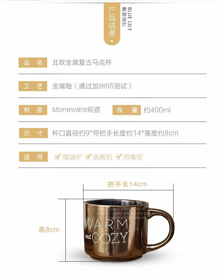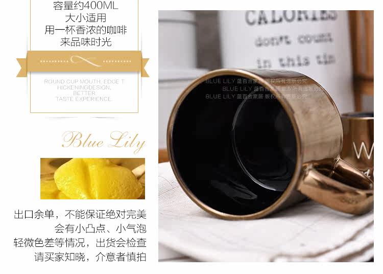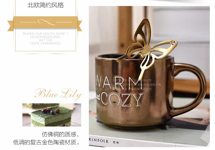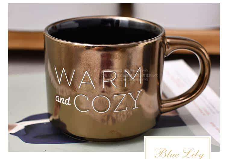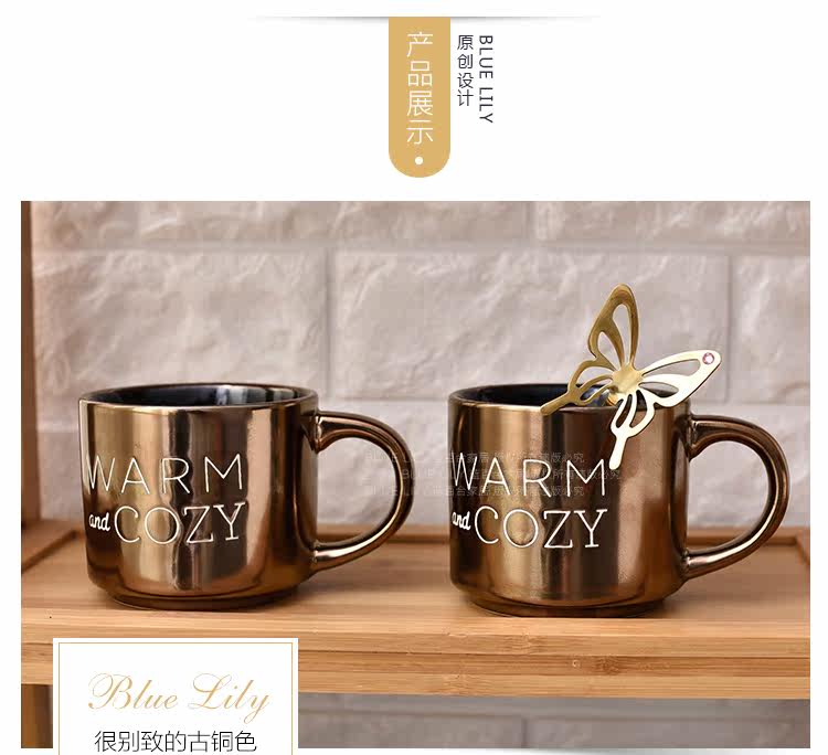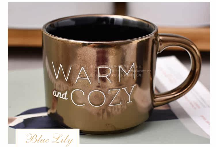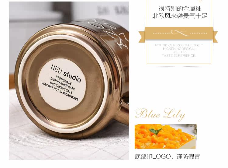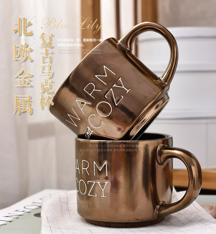 出口美国复古金属色字母简约手工陶瓷马克杯咖啡杯随手杯400ml