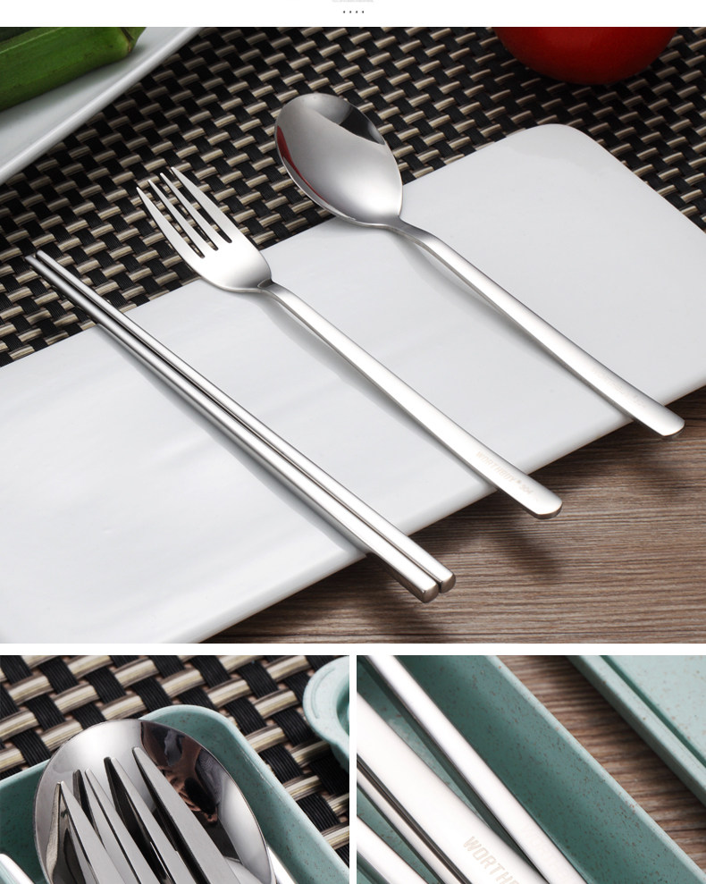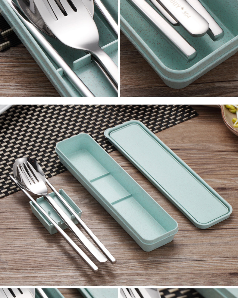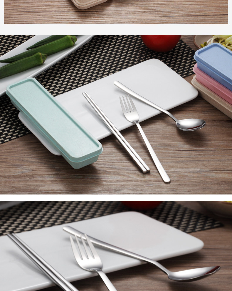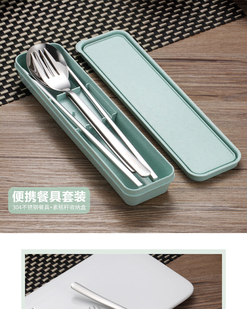 创意不锈钢304便携餐具筷子勺子套装可爱三件套学生叉子儿童筷盒