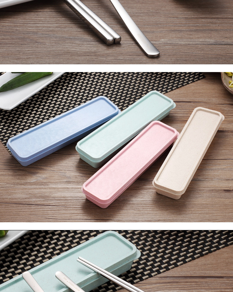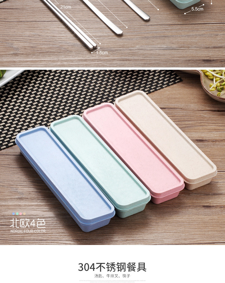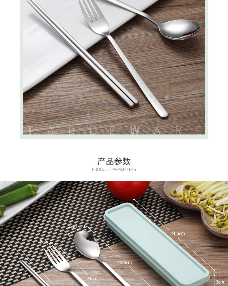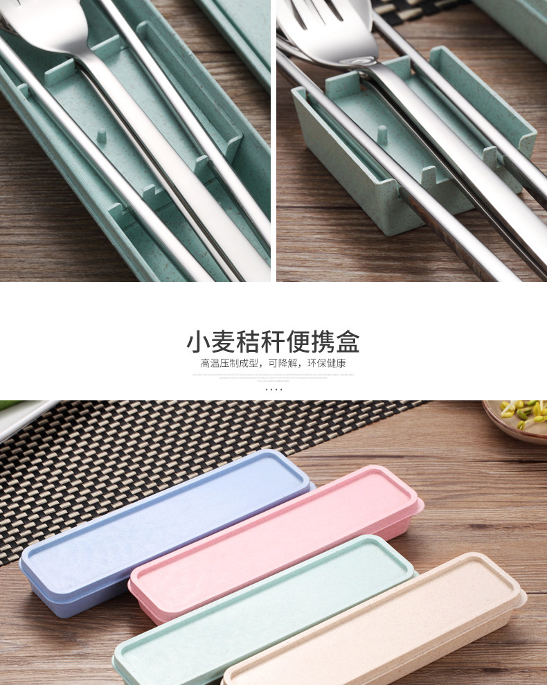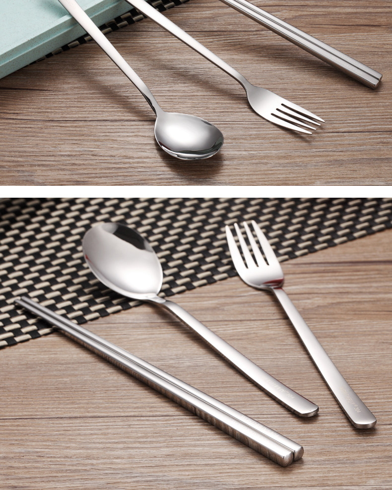 创意不锈钢304便携餐具筷子勺子套装可爱三件套学生叉子儿童筷盒
