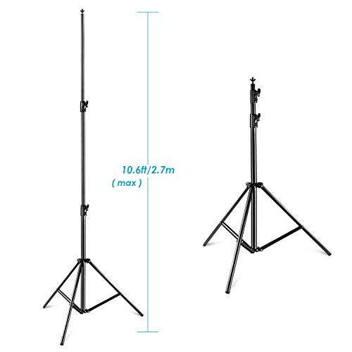 The height of the stands is adjustable up to 10.6ft/2.7m. Solid safety 3 legs stages, capable for stable,heavy duty work.