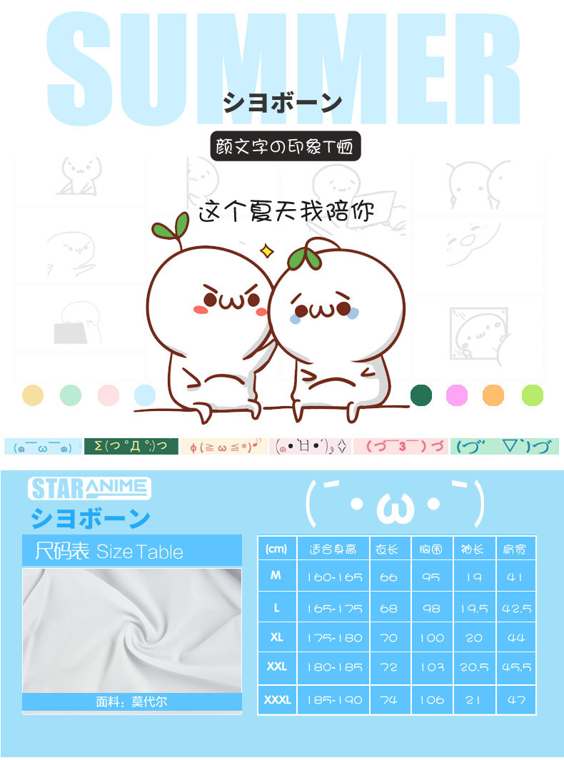 颜文字君T恤 颜文字动漫上衣 炸鸡块君 动漫男女学生短袖