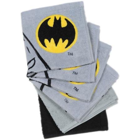 -. Brand : Warner Bros -. Color : Black, Yellow -. EAN : 0634563035973 -. Feature : Set includes: 1 Batman Hand Towel and 2 Batman Bath Towels. 100% Cotton / Washcloth 6-Piece Set Contains 4 P.R.Inted Wash Cloths And 2 Solid-Color Wash Cloths. Measures 12" X 12" / Batman Wastebasket Measures 8" x 10" / Toothbrush Holder Measures 5"H X 4.375"W / Batman Logo Dispenser for Lotion or Soap Measures 6"H x 4"W -. Label : Warner Bros -. Manufacturer : Warner Bros -. PackageQuantity : 1 -. ProductGroup : Home -. ProductTypeName : HOME_BED_AND_BATH -. Publisher : Warner Bros -. Studio : Warner Bros -. Title : Batman Bathroom Accessories 12pc Bundle -. UPC : 634563035973