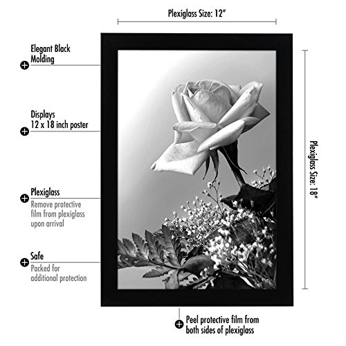 12x18 Black Poster Frame with Plexiglass Front By Americanflat - Designed to Display Vertically or Horizontally on a Wall - Mounting Hardware Included