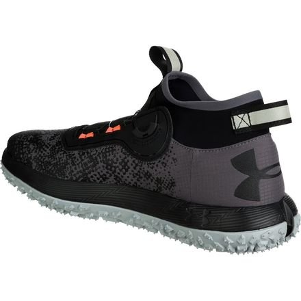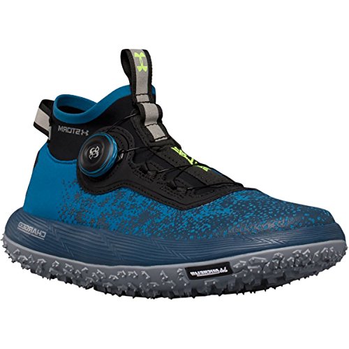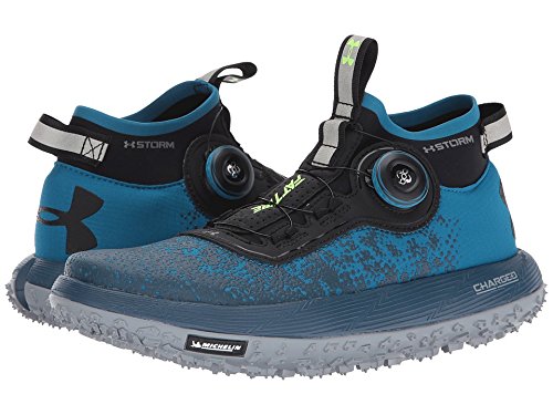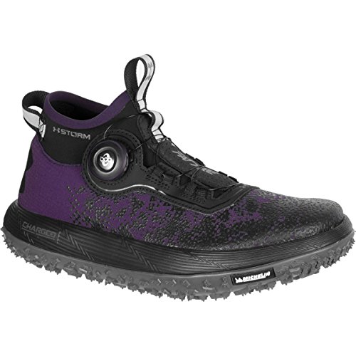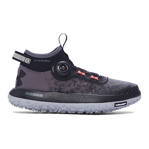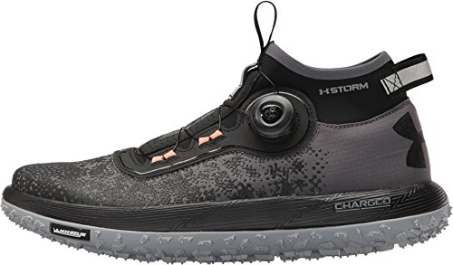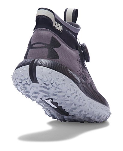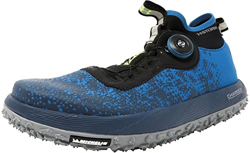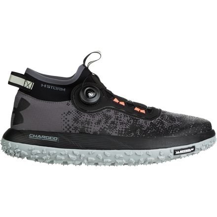 Studio : Under Armour Publisher : Under Armour Binding : Apparel Product Description Flexible, soft-shell upper finished with a tough rubberized print to provide lightweight durability. UA Storm uses a DWR finish to repel water without sacrificing breathability. Boa® Closure System uses nylon coated steel laces that twist shut for a precise fit that locks you in quicker, tighter easier than ordinary laces. Snug, bootie-like, ankle collar construction increases support acts as a shield against mud, rain any other debris that comes your way. Cupron® Anti-Fungal Pro Fibers reduce odor kill 99.9% of athlete's foot fungus after 12 hours of contact with the sockliner. Charged Cushioning® midsole absorbs impact converts it into responsive quickness. Michelin® Wild Gripper outsole rubber compound uses unique traction lugs for unmatched grip traction on any terrain. Offset: 8 mm. Weight: 10.3 oz.. 0