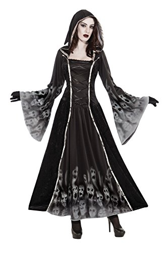-. Binding : Apparel -. Brand : Forum Novelties -. ClothingSize : One Size Fits Most -. Color : Black -. Department : womens -. Feature : Forsaken souls costume includes black dress with attached hood / Dress features metallic silver trim, corset style lacing, bell sleeves, and creepy ghost print / Standard size fits women with a 34 to 38-inch bust and 26 to 32-inch waist / Pair with forgotten souls costume by forum for a great couple's look / Made by forum novelties, a leader in costumes and novelty products for more than 30 years -. Genre : Classic -. IsAdultProduct : 0 -. Label : Forum Novelties Costumes -. Manufacturer : Forum Novelties Costumes -. PackageQuantity : 1 -. ProductGroup : Apparel -. ProductTypeName : ADULT_COSTUME -. Publisher : Forum Novelties Costumes -. Size : One Size Fits Most -. Studio : Forum Novelties Costumes -. Title : Forum Novelties Women's Forsaken Souls Costume