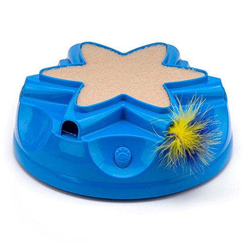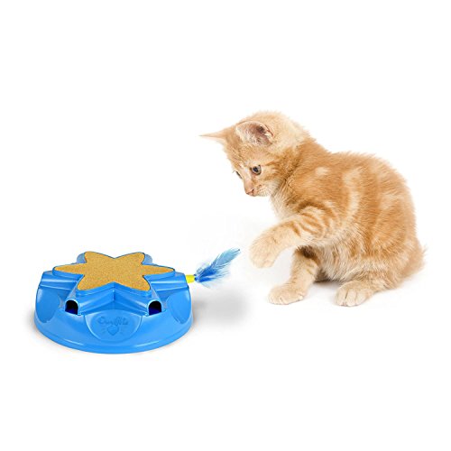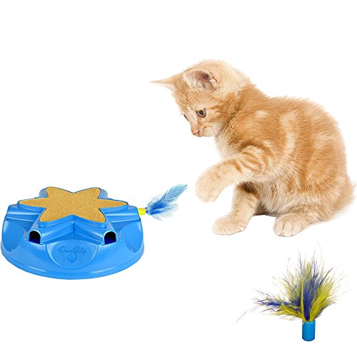 Studio : OurPets Publisher : OurPets Binding : Misc. Product Description Voted "Best New Cat Product" at the pet supply industry trade show, SuperZoo, the OurPets Catty Whack is the hide seek toy where instinct meets play! The Catty Whack is an unpredictable game of hide seek specifically designed to encourage independent play for cats of all ages! Cats love the original electronic RealMouse sound and the erratic movement of the feather keeps your cat guessing as it randomly dashes and darts in and out of the six mouse holes. The feather wand and the electronic RealMouse sound mimic prey in the wild, stimulating your cat's natural hunting instincts and leading to plenty of purr and pounce action! On the top of the Catty Whack, there is a carpeted scratching area where cats can groom their claws on a texture that they find enticing. The bottom of the toy has non-skid rubber feet, which keep the toy from sliding as your cat plays. There is also an auto-shut off feature and a replacement feather prey wand is included. Where will the feather wand pop out next? Your cat will never know, and that is half of the fun! 0