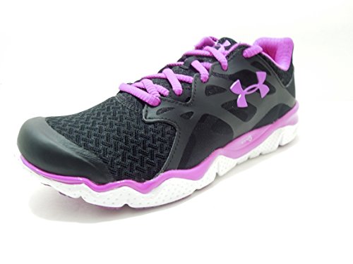 -. Binding : Apparel -. Brand : Under Armour -. Color : Black White Purple -. Department : womens -. Feature : Stability meets speed in this high performance running shoe / Foot-hing HeatGear® upper delivers a super breathable second skin fit / Medial TPU bumper adds extra stability by correcting mild to moderate pronation / Padded MPZ® toe and tongue protects your foot while allowing you to cinch your laces tight for a stable, secure fit / Beefier Micro G ® midsole provides extra cushioning and more consistent rebound -. ProductGroup : Shoes -. ProductTypeName : SHOES -. Title : Under Armour Micro Monza Running Shoes Womens Black White Purple