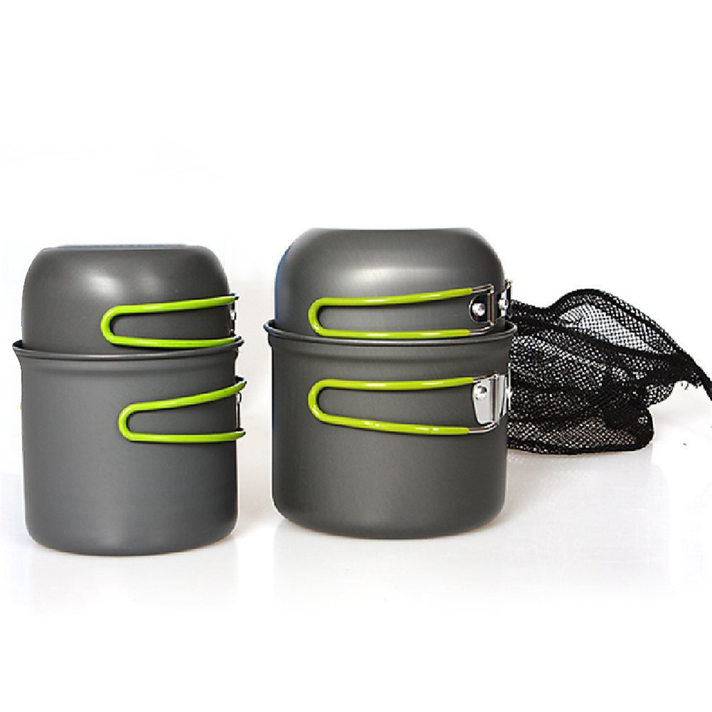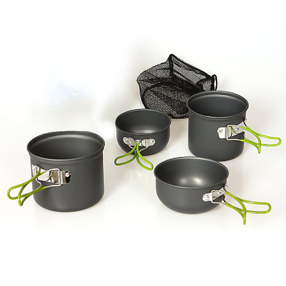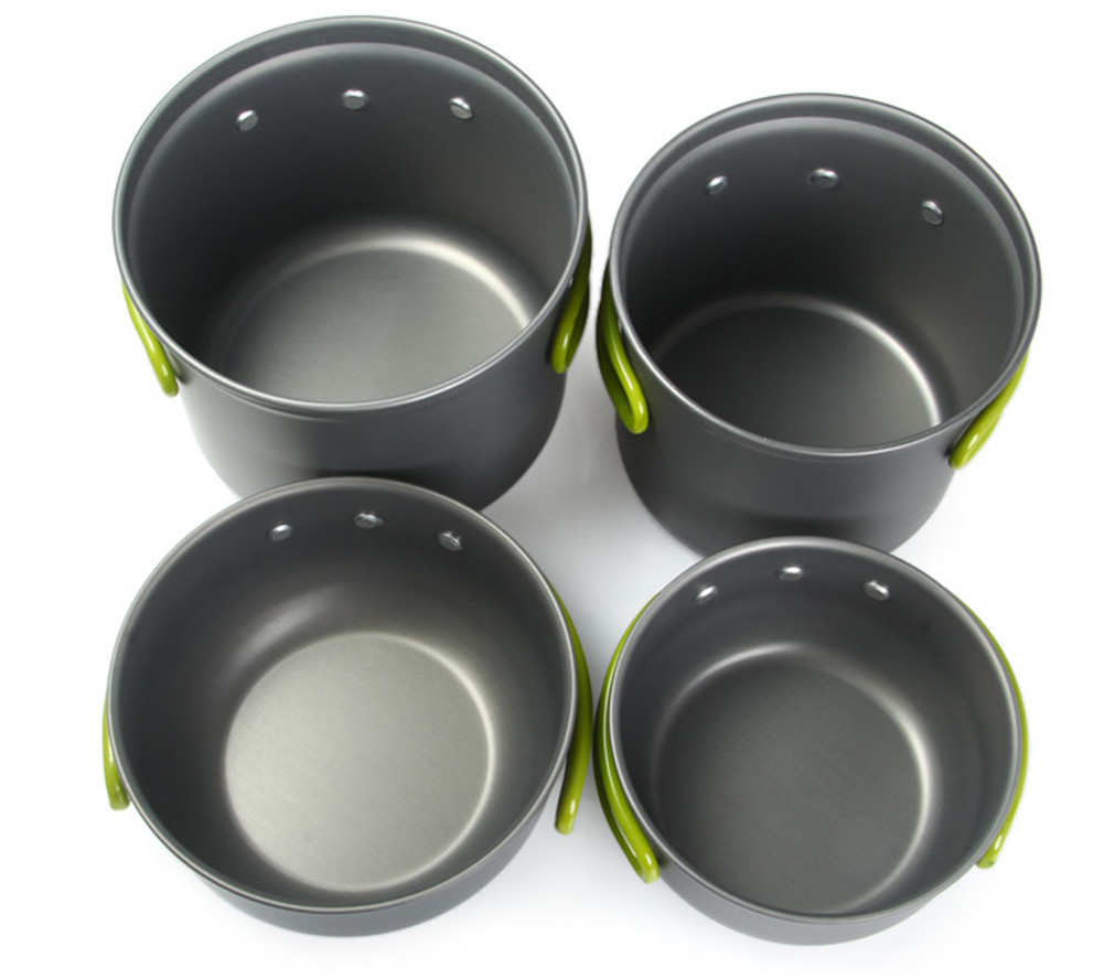 4pcs Outdoor Portable Cookware Anodised Aluminum Pot Bowl Camping Utensils