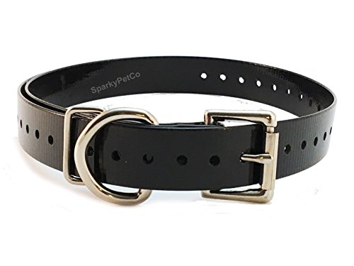 Sparky PetCo ¾" Waterproof High Flex Roller Buckle Replacement Strap With "D" Ring For Garmin, Dogtra, PetSafe, SportDOG, E Collar Systems Keep your dog safe and yourself stress free! Our waterproof, odor proof 3/4" x 28" Roller Buckle Dog Replacement Straps with a “d” Ring is suitable for all E Collar Systems including Garmin, Dogtra, PetSafe, SportDOG, E Collar (Formerly Einstein) Educator, Esky as well as other systems that utilize a ¾” replacement strap. 30 sizing holes are spaced tightly to allow for a perfect fit. Strap width is 3/4 inch and the length measures approximately 27 inches from one end of the strap to the other (not including buckle). The unique strap material may be cut to your desired length - no need to worry about the collar unraveling or being damaged. Both ends and all holes are heat-sealed for a long-lasting, finished look. 0 |