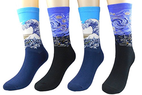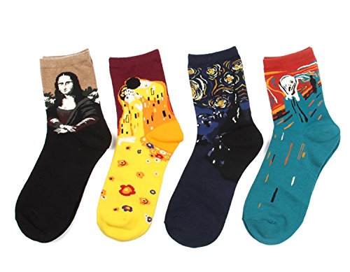 -. Binding : Apparel -. Brand : Fantastic Cos -. Department : unisex-adult -. Feature : Size: best fits US Men or Women 6-11 / 4pairs(4color)=1pack(8 pcs) / Comfortable for sporting with fashionable pattern painting, suitable for lovers in Valentine's Day / Made of Fine Cotton Material, Stylish design, Stylish, Fashion Socks / Famous patterns contents Vincent van Gogh's Starry Night,Leonardo da Vinci's Mona Lisa,Edvard Munch's The Scream, Kanagawa surfing -. ProductGroup : Apparel -. ProductTypeName : SOCKSHOSIERY -. Title : Famous Painting for Men's Art Patterned Casual Best Crew Socks (4 Pairs)