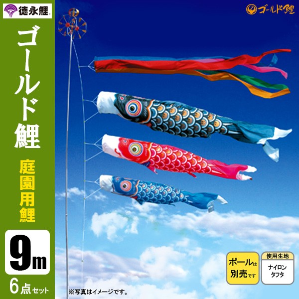 | ゴールド鯉 庭園用大型鯉のぼり スタンド砂袋式ポール付セット | 1.5m鯉3匹 | 2m鯉3匹 | 3m鯉3匹 3m鯉4匹 3m鯉5匹 | 4m鯉3匹 4m鯉4匹 4m鯉5匹 |