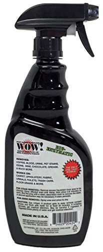 -. Feature : WOW stain & odor eliminator, removes urine, blood, grease, wine, & coffee, 16 oz. spray bottle / Bio-enzyme environmentally safe cleaner in a unique proP.R.Ietary formula / Removes organic stains from carpet, fabric & upholstery without using any harsh chemicals or bleach / Rinse free and quick drying without leaving behind any soapy residue to re-attract stains and soils / Great for deodorizing a wide variety of surfaces including urinals, toilets & trash cans