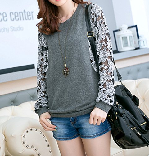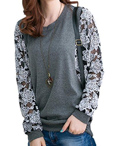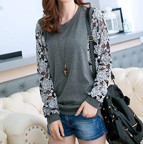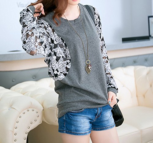 -. Feature : Mサイズ(約)・・・ 着丈58cm 肩幅35cm バスト84cm 袖丈54cm / Lサイズ(約)・・・ 着丈60cm 肩幅36cm バスト86cm 袖丈56cm / XLサイズ(約)・・・ 着丈62cm 肩幅38cm バスト90cm 袖丈58cm / 素材:コットン/ポリエステル ・カラー:グレー / ちょっぴりドルマン袖の花柄レースが上品で大人かわいいデザイノカットソー。 シンプルの中にしっかりとおしゃれなシャツです。 柔らかい生地で、肌触り着心地◎ 落ち着いたグレーカラーで、コーデに取り入れやすい。 ボトムスにモデルさんみたいにショートパンツやホットパンツや 、マキシ、ロングのスカートで大人の女性らしく。 寒い時にはジャケットやコート、パーカーなどのアウターを着てもごわつきません。 華やかな雰囲気を演出できます。 着こなし次第で、キレイめにもカジュアルにも。