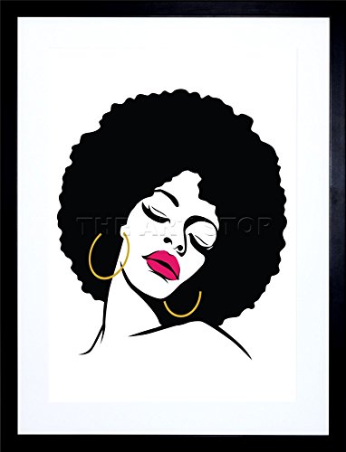9x7 '' PAINTING WOMAN WITH AFRO HAIRSTYLE LIPSTICK FRAMED ART PRINT F97X669