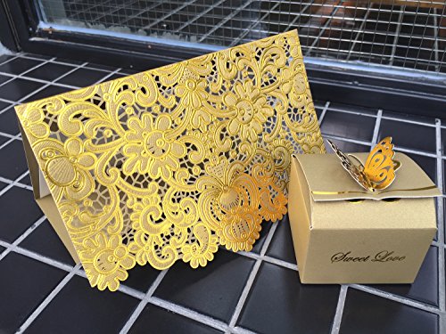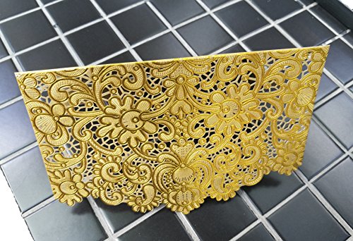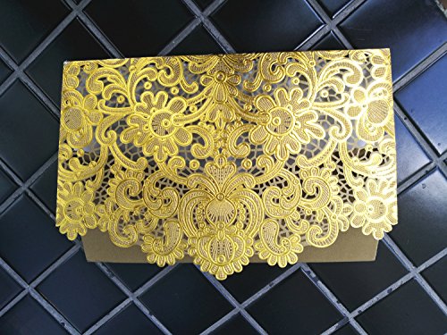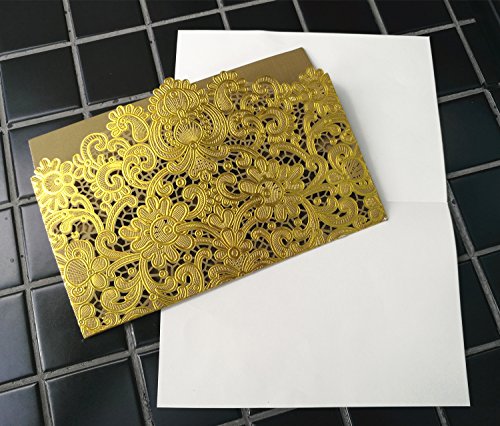 KAZIPA 25 Pack Set Laser Cut Invitation Cards, 5‘’ x 7.3'' Gold Invitations + Blank Paper + Envelopes for Wedding Anniversary Bridal Shower Birthday (Brown & Gold)