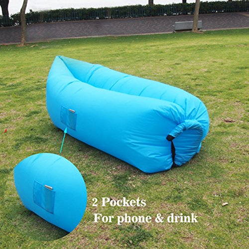 Vetroo Outdoor Inflatable Hangout Portable Bag Lounger - BLUE - Made with High Quality Nylon Fabric - Suitable For Camping, Pool, Beach Couch Sofa, Dream Chair Garden Cushion, Sleeping Air Bed